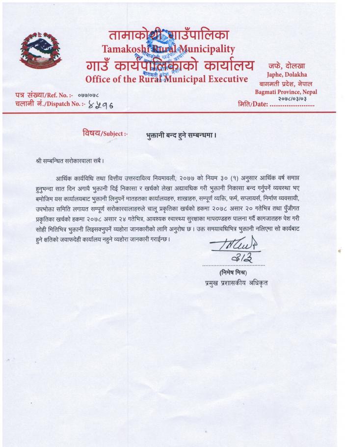 गाउँपालिकाबाट हुने भुक्तानी सेवा बन्द रहने सम्बन्धमा अत्यन्त जरुरी सूचना ।