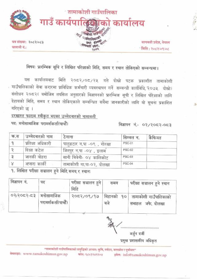 नोटः मनोसामाजिक परामर्शकर्ताको पाठ्यक्रम यसैसाथ संलग्न रहेको छ ।