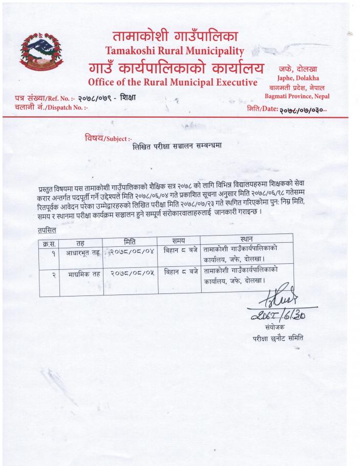 » लिखित परीक्षा सञ्चालन सम्बन्धमा ।