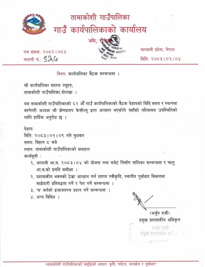 कार्यपालिका बैठक सम्बन्धमा - ९ बैशाख २०८३