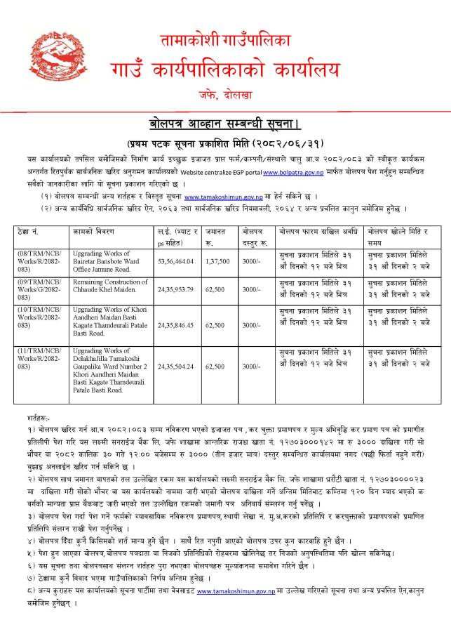प्रथम पटक सूचना प्रकाशित मिति (२०८२/०६/३१)