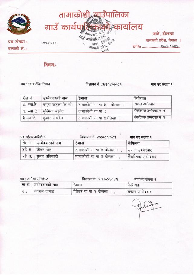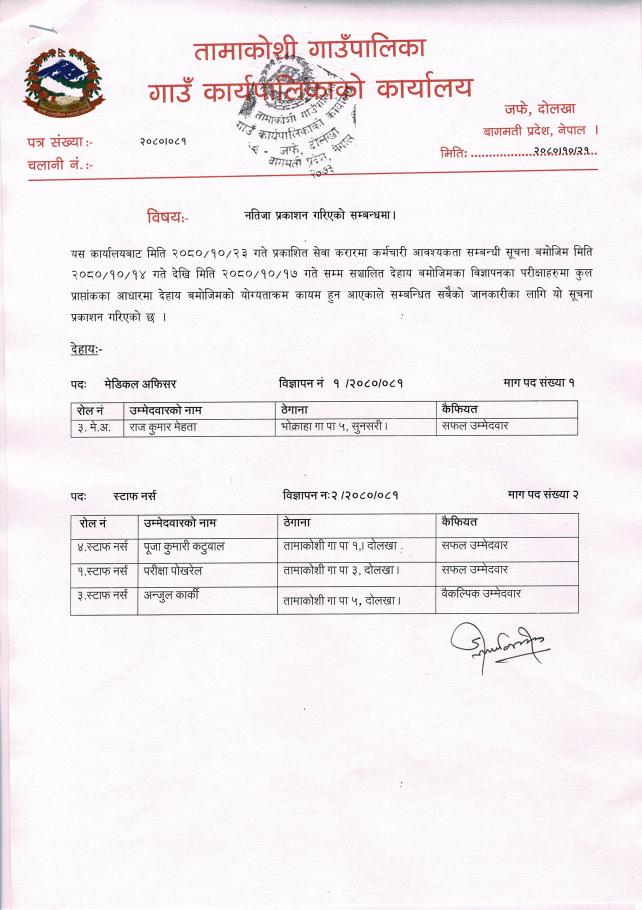 नतिजा प्रकाशन गरिएको सम्बन्धी सूचना - स्वास्थ्य कर्मचारी ।