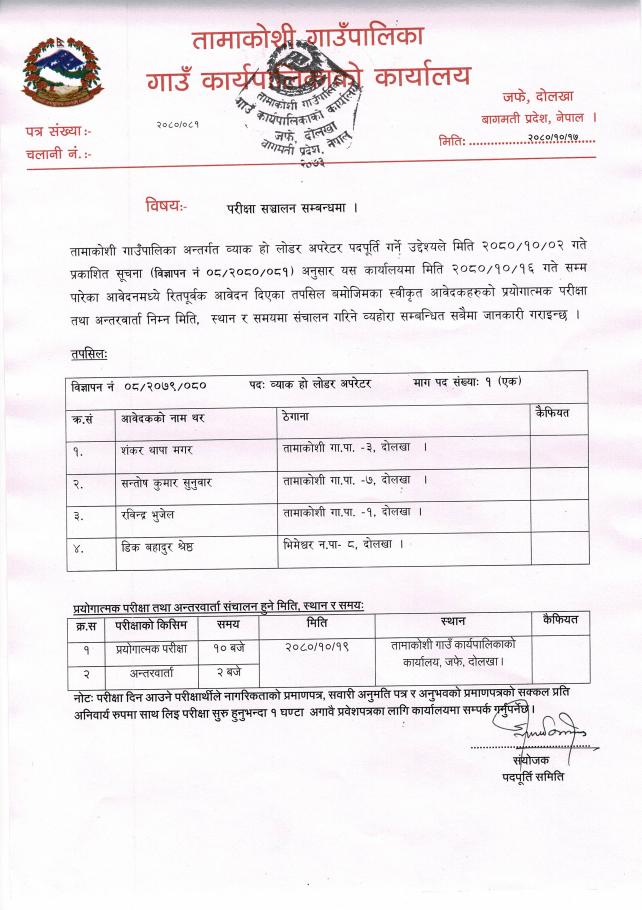 » परिक्षा सञ्चालन सम्बन्धी सूचना - व्याक हो लोडर अपरेटर ।