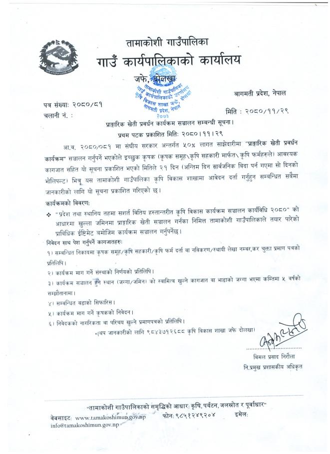» प्राङ्गारिक खेती प्रवर्द्धन कार्यक्रम सञ्चालन सम्बन्धी सूचना ।