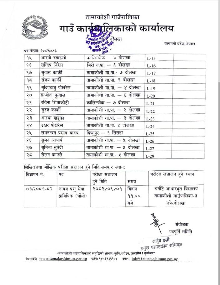 -नायव पशु सेवा प्राविधिक (चौथो)