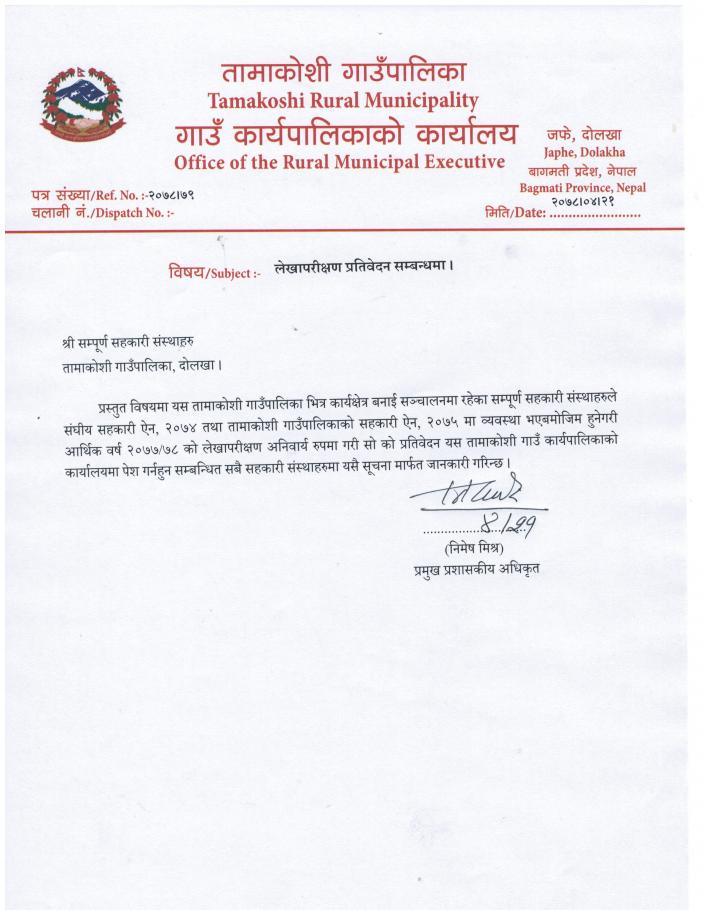 » लेखापरीक्षण प्रतिवेदन सम्बन्धमा - सहकारी संस्थाहरु (सबै) ।