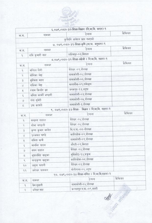 विभिन्न तहका शिक्षक छनौट परीक्षा सञ्चालन सम्बन्धी सूचना ।
