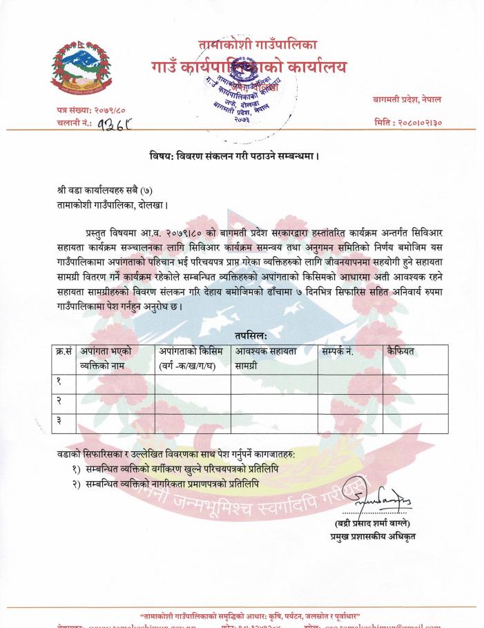 विवरण संकलन गरी पठाउने सम्बन्धमा - सिविआर सहयोग कार्यक्रम सञ्चालन ।