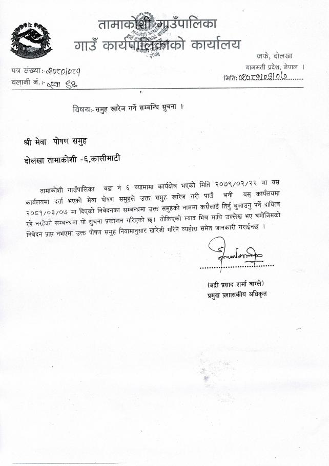 » समुह खारेज सम्बन्धी सूचना ।
