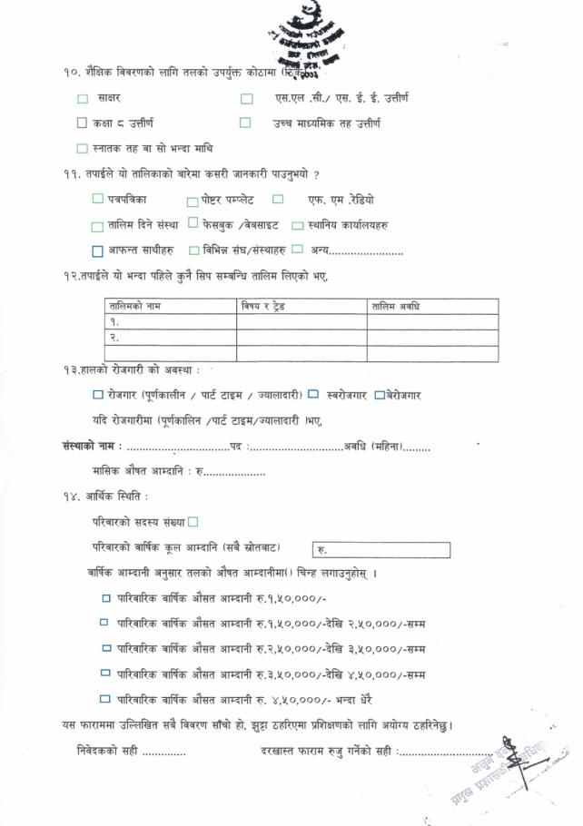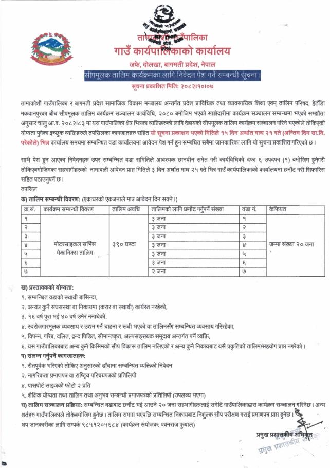 सीपमूलक तालिमका लागि आवेदन पेस गर्ने सम्बन्धी सूचना ।