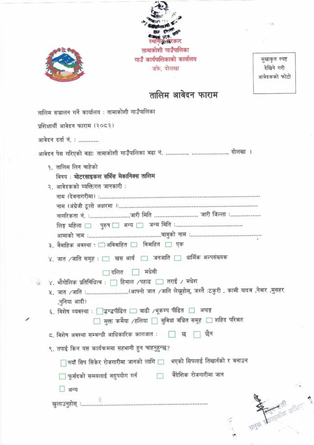 आवेदन फाराम यसैसाथ संलग्न छ ।