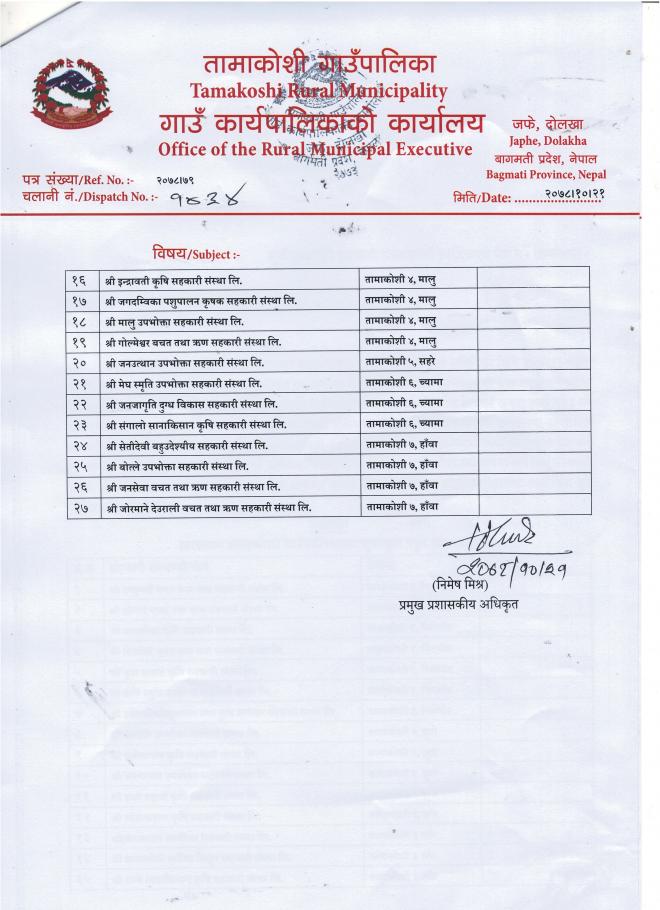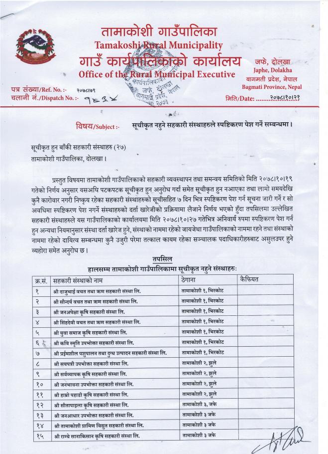 सूचीकृत नहुने सहकारी संस्थाहरुले स्पष्टिकरण पेश गर्ने सम्बन्धमा ।