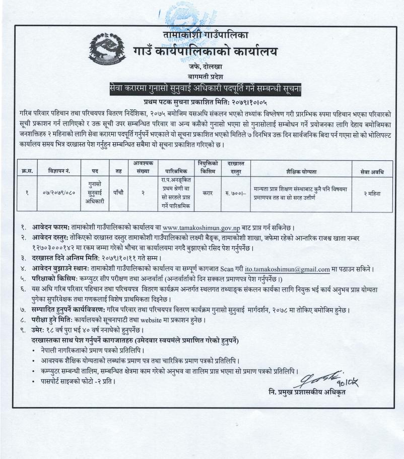 » सेवा करारमा गुनासो सुनुवाई अधिकारी पदपूर्ति गर्ने सम्बन्धी सूचना ।